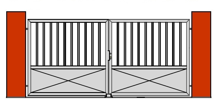 Vjezdové brány dvoukřídlé průjezdné šířky do 3,5m a výšky do 2m vyráběné na zakázku dle požadavku zákazníka. Možnost vyrobit křídla buď v poměru 1/2 a 1/2, nebo 1/3 a 2/3.