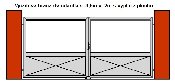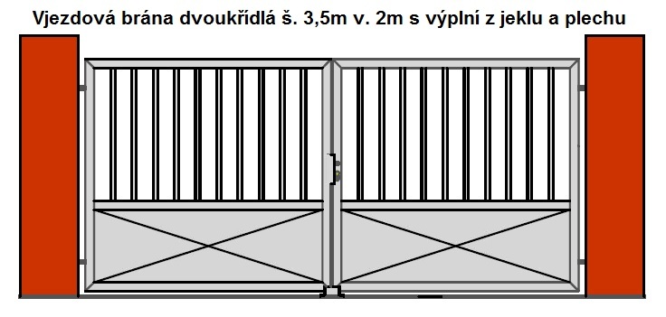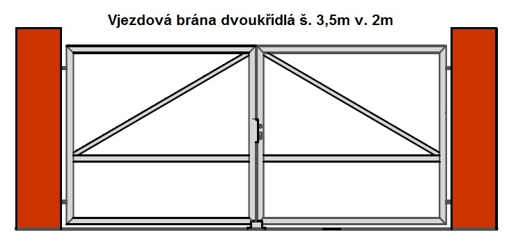 Vjezdová brána dvoukřídlá šířka do 3,5m výška do 2m