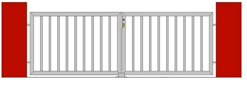 Vjezdové brány dvoukřídlé průjezdné šířky do 3m a výšky do 1,39m vyráběné na zakázku dle požadavku zákazníka. Možnost vyrobit křídla buď v poměru 1/2 a 1/2, nebo 1/3 a 2/3.
