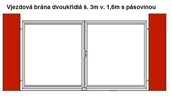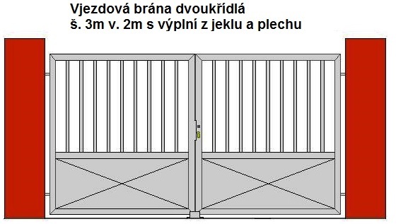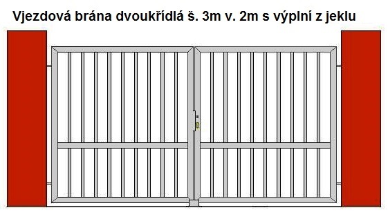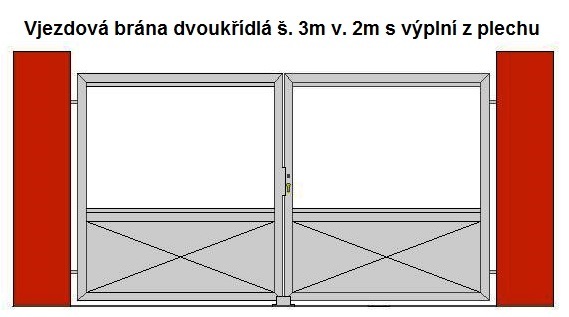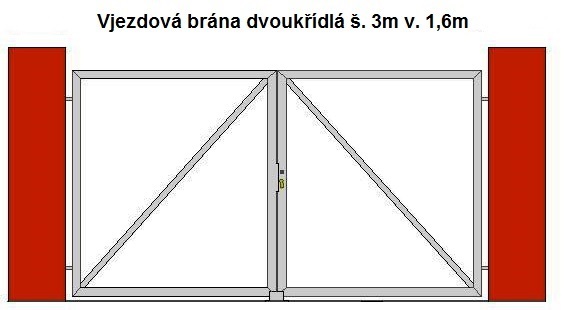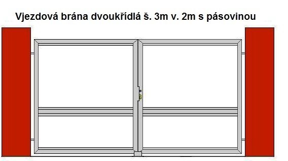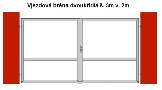 Vjezdová brána dvoukřídlá šířka do 3m výška do 2m