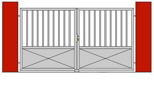 Vjezdové brány dvoukřídlé průjezdné šířky do 3m a výšky do 2m vyráběné na zakázku dle požadavku zákazníka. Možnost vyrobit křídla buď v poměru 1/2 a 1/2, nebo 1/3 a 2/3.