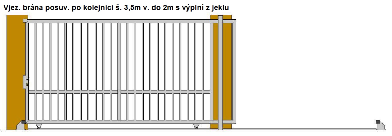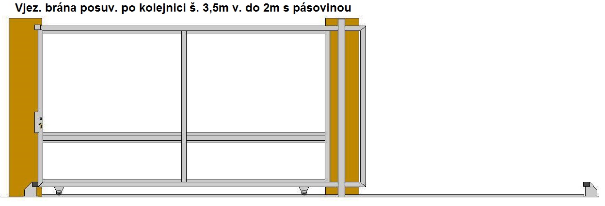 Vjezdová brána posuvná po kolejnici průjezd. šířka do 3,5m v. 2m