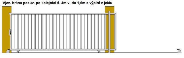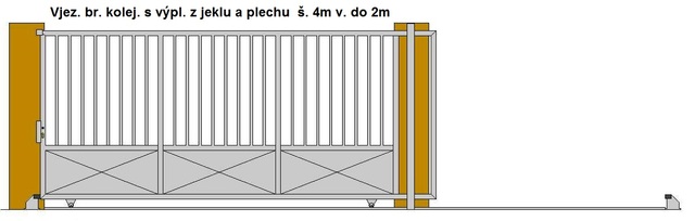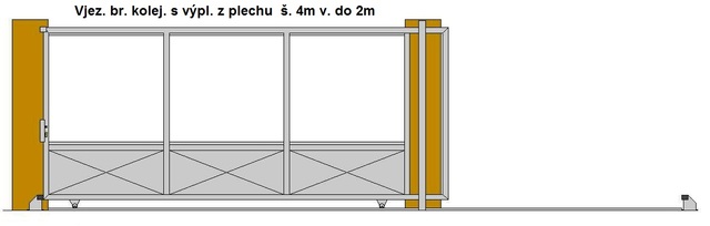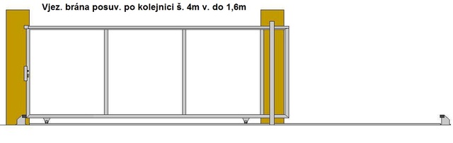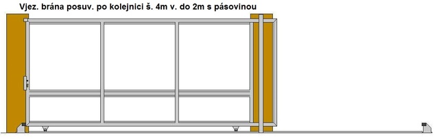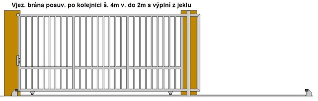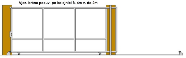 Vjezdová brána posuvná po kolejnici průjezdná šířka do 4m v. 2m