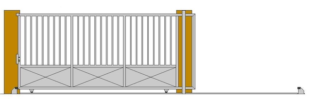 Brána je standardně tvořena jedním posuvným křídlem. Větší průjezdy lze řešit i dvěma křídly s odsuvem do protilehlých stran. Standardně bránu dodáváme manuálně ovládanou včetně zabezpečení hákovým zámkem. Rovněž lze bránu dodat ve variantě pro automatické ovládání pomocí elektromechanického pohonu, který posouvá bránu přes ozubený hřeben ukotvený ve spodní části brány. Elektrický pohon umožňuje ovládat bránu pomocí dálkových ovladačů.