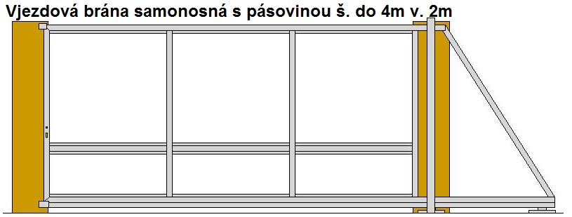 Vjezdová brána samonosná průjezd. šířka do 4m v. 2m